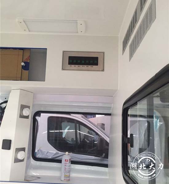 监护型基本配置:1、高分子材料医疗车环保专用一体化内饰;2、长排救护警灯及四周爆闪灯;3、自动上车担架;4、铲式担架、折叠担架;5、供氧系统、氧气瓶及氧气柜、快速接口;6、工作座椅,陪护座椅;7、消毒灯;8、逆变器及蓄电池;9、外接电源系统;10、车内照明系统;11、电子换气扇;12、中隔板(带观察窗);13、上车后踏板;14、前后对讲系统;15、可冲洗医用耐磨地板;16、污物桶;17、车身广告及救护标志;18、医疗舱空调。
