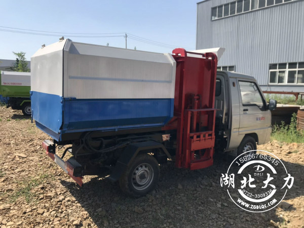 自装卸式自装卸式挂桶垃圾车(挂桶式自装卸式挂桶垃圾车、小型挂桶式自装卸式挂桶垃圾车)是由密封式垃圾厢、液压系统、操作系统组成,能配几十个垃圾桶,实现一车与多个垃圾桶联合作业,厢体上的液压升降装置可将垃圾桶吊上、放下,上下升降,上下一次工作循环时间为50S,密封式厢体环保卫生,可避免二次污染。其自装式的挂桶装置可直接将路边的垃圾桶挂在上面用提升机直接到在垃圾箱体里面省去了装垃圾的麻烦。