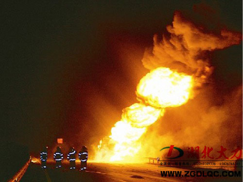 经调查,该油罐车系施工单位的油料供给车,车内装有大约1吨的柴油。此时,柴油不断向外泄漏,随时有爆炸的可能,情况十分危险。嵩县消防大队大队长李令剑,一方面命令消防官兵将工地上所有人员疏散到300米外的安全地带,一方面带领官兵拿着两支水枪,利用掩体靠近油罐车,将水枪阵地设置在离油罐车10米远处,对罐体进行冷却控火。随后,消防官兵又在罐车前增设了一个泡沫水枪阵地灭火。
